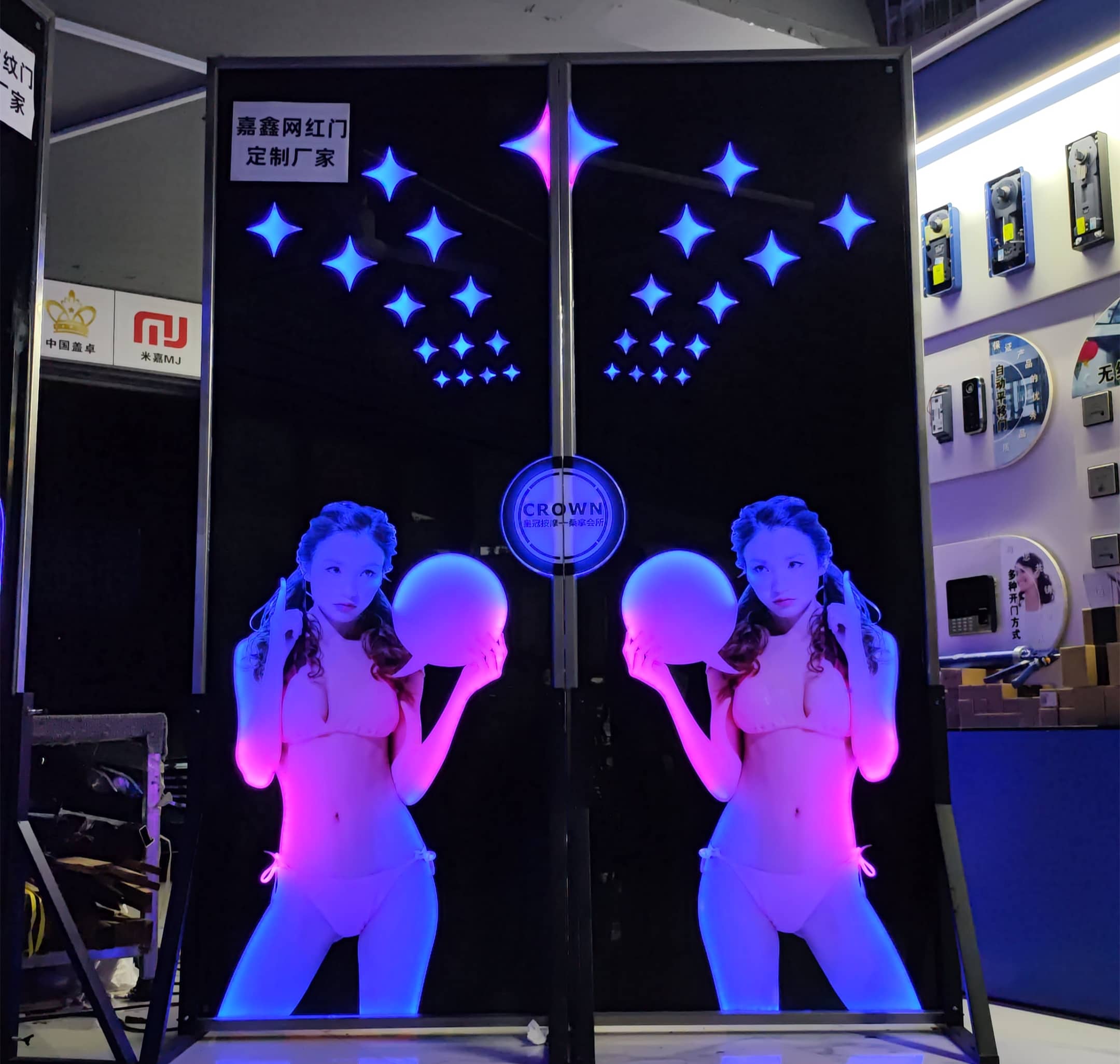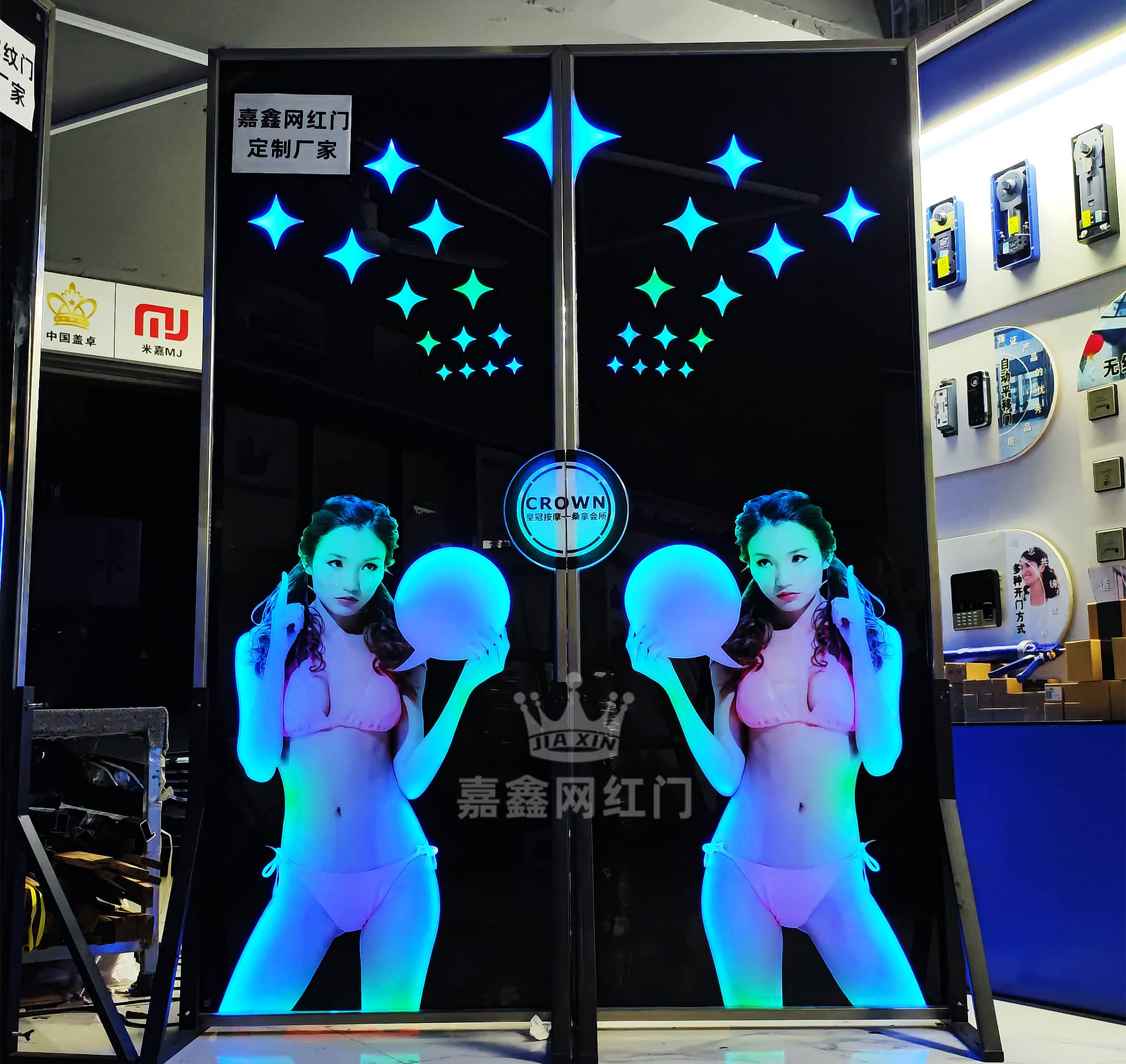 嘉鑫网红门厂家为您提供网红门、科技门、掌纹门、酒吧手掌触摸灯光门生产定做,首批网红门从业者,多年制作经验,网红门案例达上万套